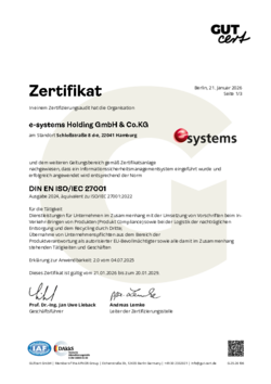 nach ISO 27001:2024 (Informationssicherheitsmanagement), 9001:2015 (Qualitätsmanagement) und 14001:2015 (Umweltmanagement)